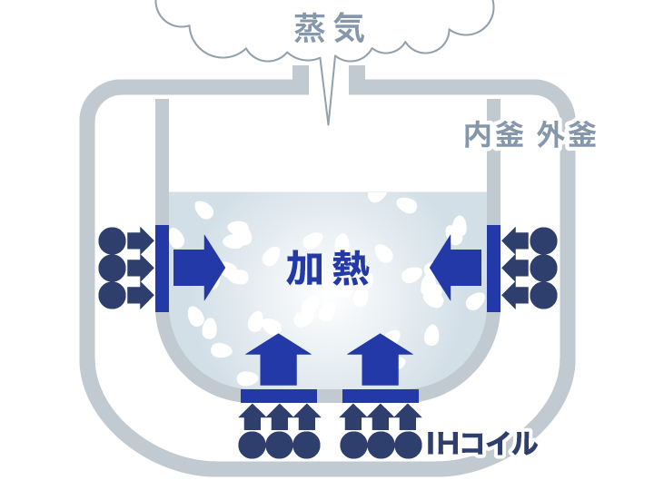 内釜全体を均一に加熱してお米に熱をムラなく伝えるタイプ。