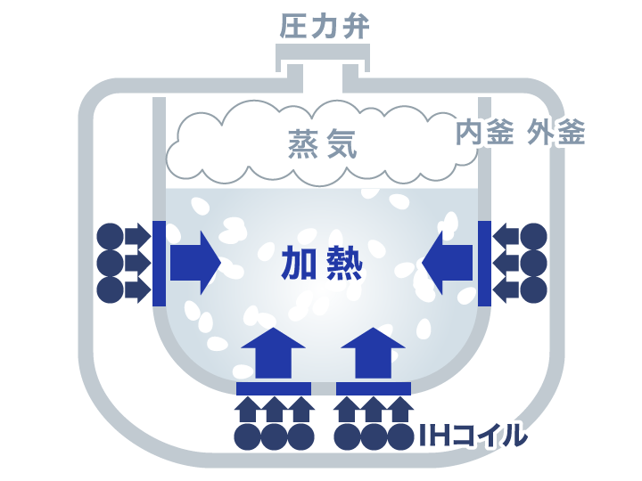 内釜に圧力をかけてお米の芯までしっかりと熱を伝えるタイプ。